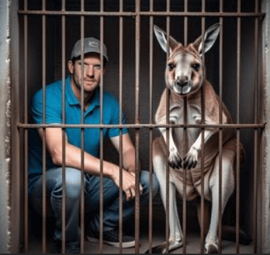 Ai rendition of me in cage with a Kangaroo for dramatic closing